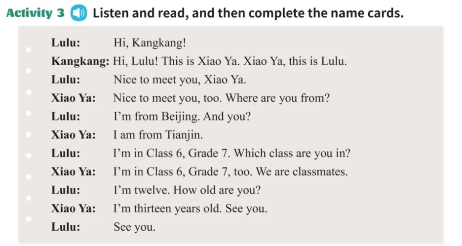 第①次作业没提交的同学,今天务必提交。(没有提交的同学下一节课背诵今天的英语对话作业,并带来英语课本。)